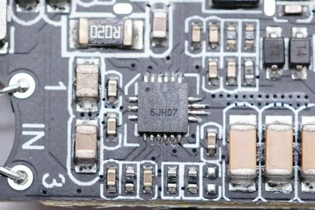 耳机无线充集成功率级驱动芯片特写,丝印5JH07。