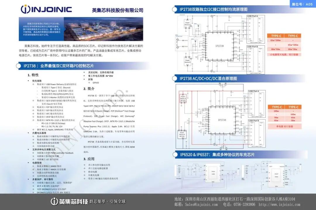 英集芯在本次展会上推出双C双环路PD控制芯片,内置双路控制电路,具有两个独立的反馈端子,可将两路开关电源输出并联,两个输出口任意单插都是最大功率,双口支持相同的快充协议,具有独立的过流、过压、短路保护功能。实现灵活的设计。并且还有外围简洁的车充芯片,协议支持广泛。
