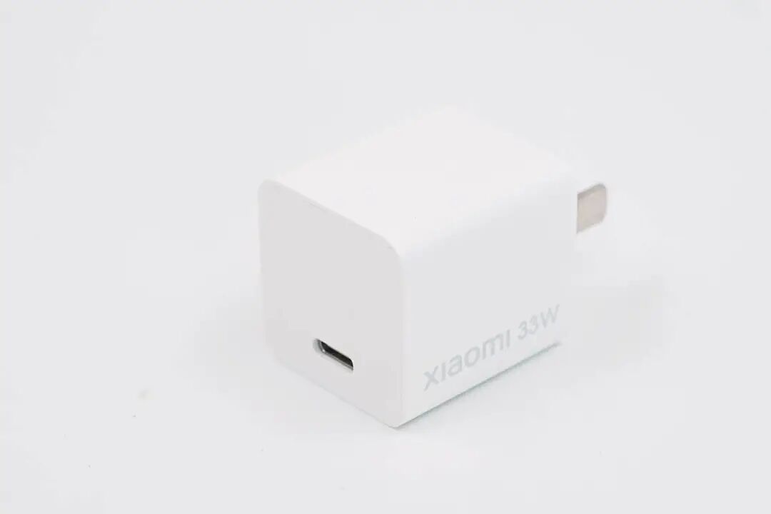 小米33W氮化镓充电器输出顶面USB-C口靠侧边设计,白色胶芯。
