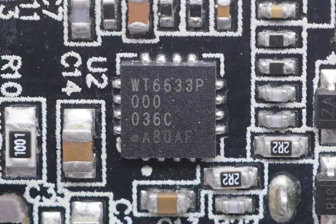 小米55W氮化镓充电器协议IC采用伟诠 WT6633P,支持USB PD3.0,支持高通QC4,QC4+和QC5。通过USB-IF认证,TID1070018。同时WT6633P还通过了高通QC5认证,认证号4789627043-2,高通QC4+认证,认证号4788566324-2。WT6633P内置8051内核,内置恒压恒流控制,片内集成输出电流传感,支持线损补偿,内置完善的保护功能。