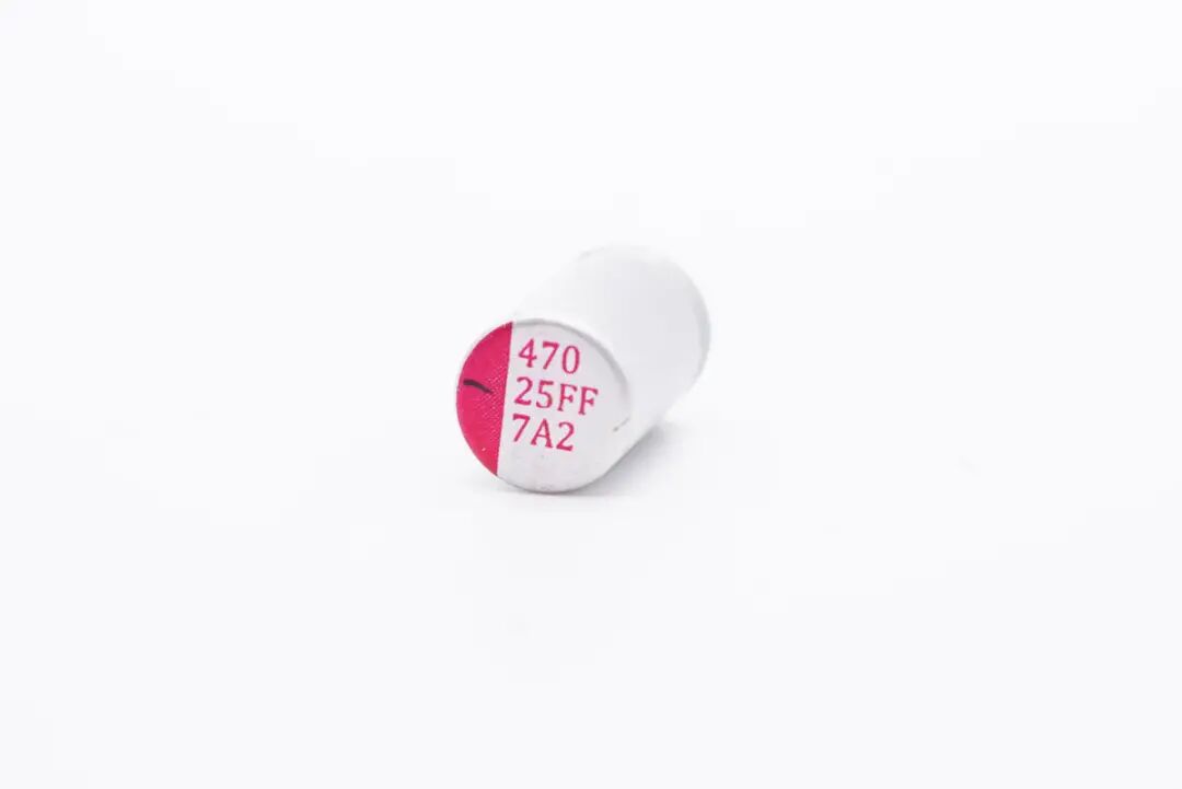 输出滤波固态电容特写,规格为25V 470μF。