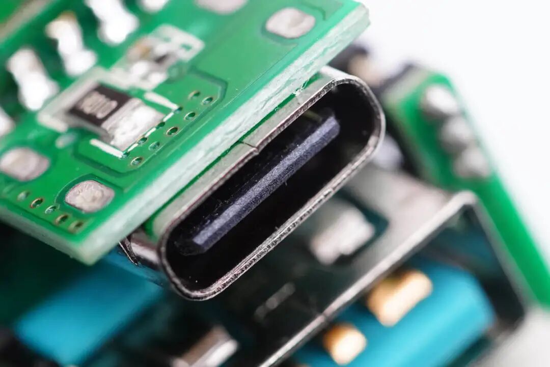 USB-C母座特写,过孔焊接。