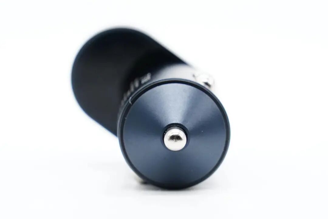 机乐堂这款车充主体外壳为铝合金材质,输入端锥体设计,顶部为“跑道”造型,整体看去像“7”字型。