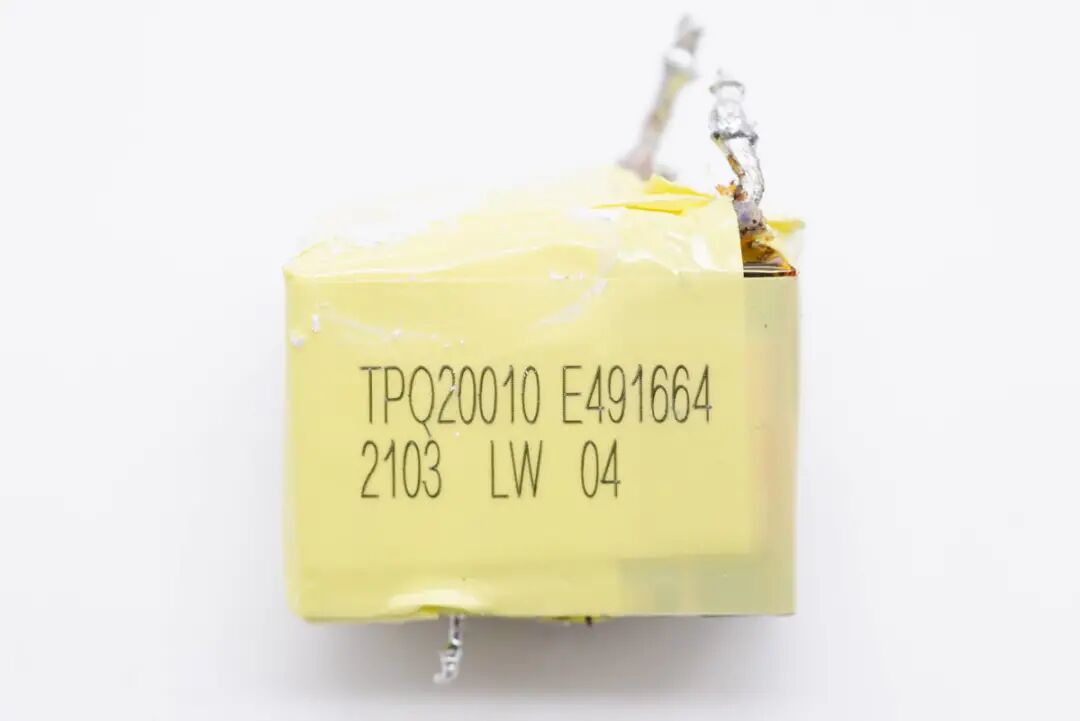 将输出端外壳拆开,变压器两侧均有打胶帮助加固。