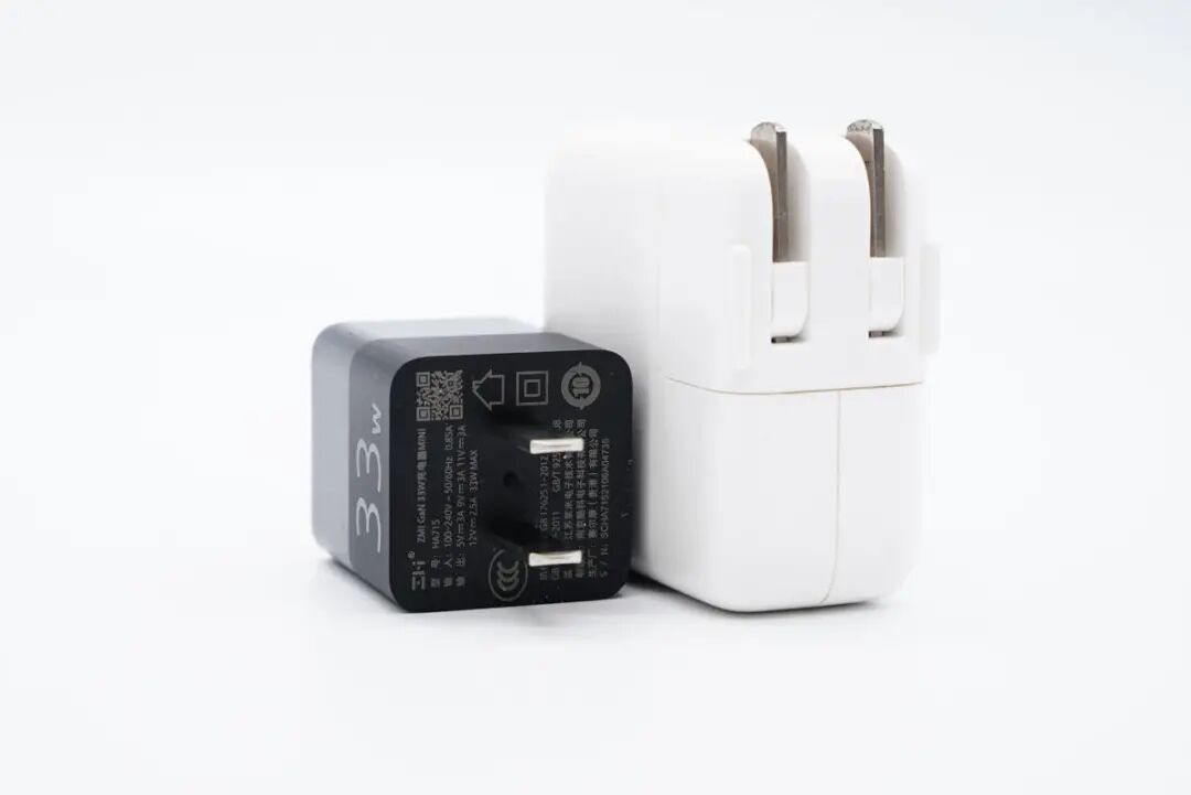 和苹果30W充电器直观对比,体积优势非常明显。