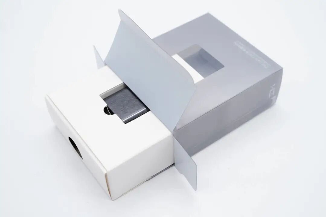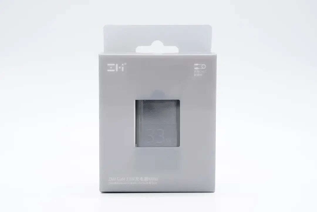 产品采用塑料外包装盒,整体为灰色,顶部带有挂钩设计,正面中心透明处理,可以观察充电器实体。此外正面上方印有ZMI logo以及CC数据线标识,下方印有充电器名称。