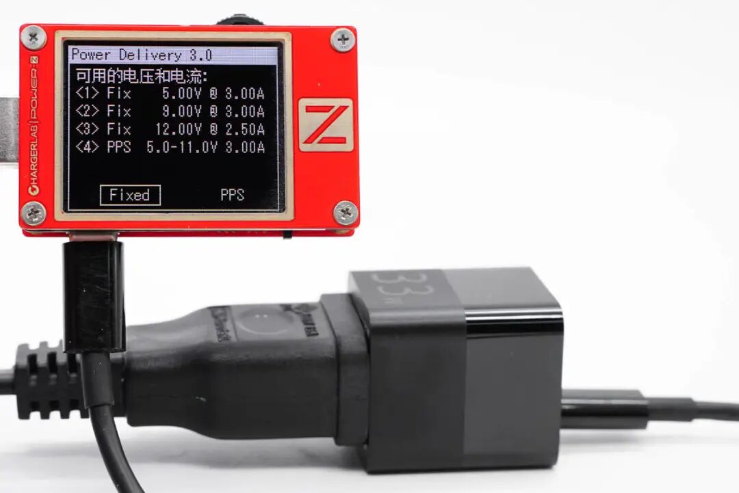 此外PDO报文显示C口还具备5V3A、9V3A、12V2.5A三组固定电压档位,以及5-11V3A一组PPS电压档位。