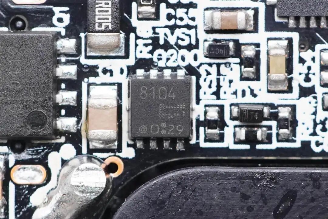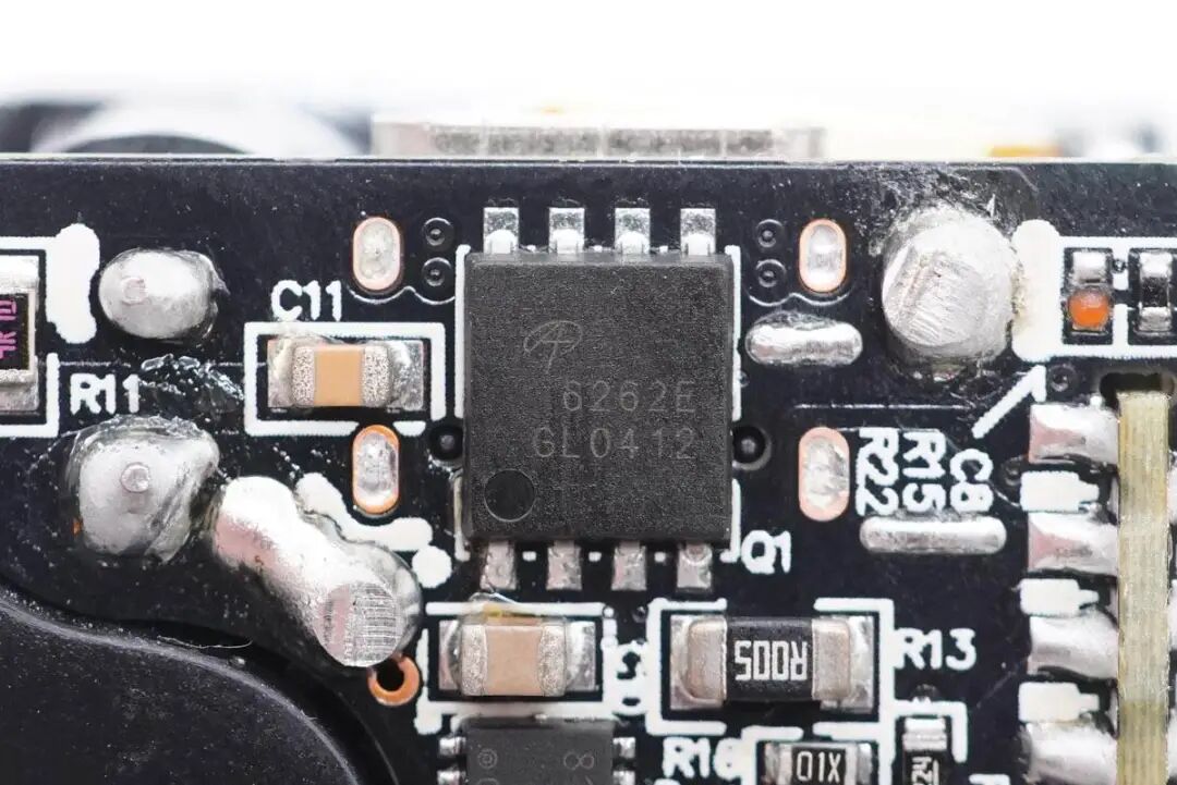 输出端小板背面设有同步整流管、协议芯片以及输出VBUS开关管。