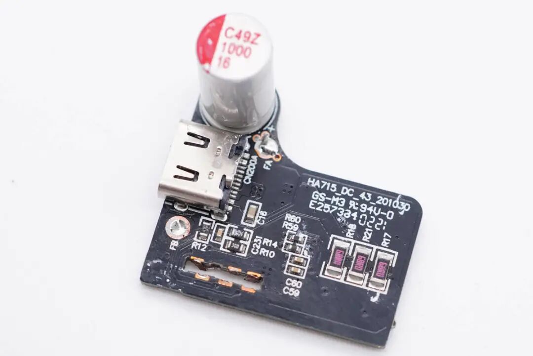 板子拆下,正面设有输出滤波固态电容以及USB母座。