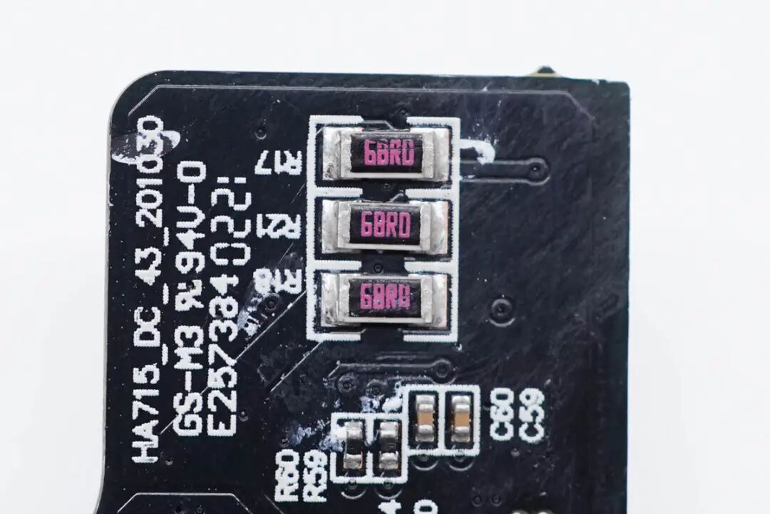 3颗68欧电阻并联,用于输出电容放电。