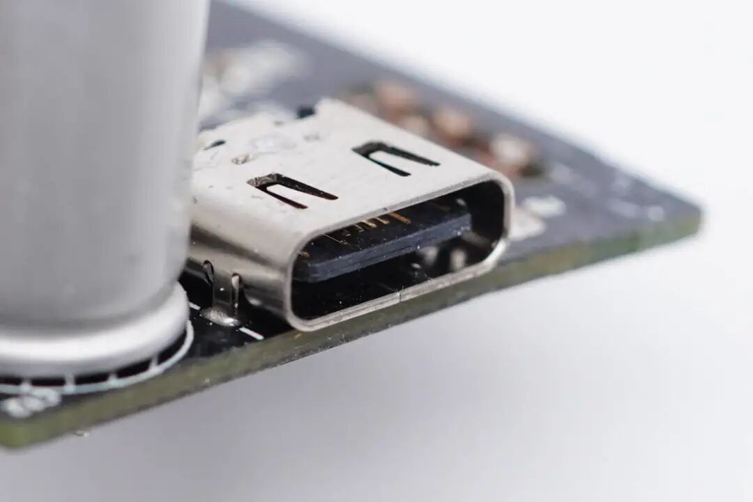 USB-C母座特写,过孔焊接。