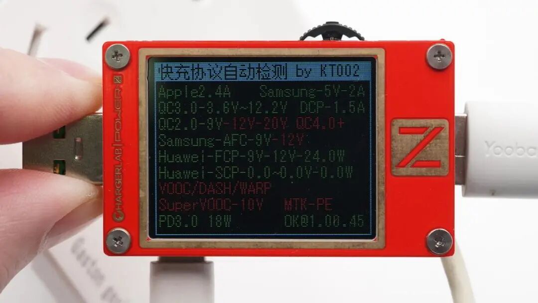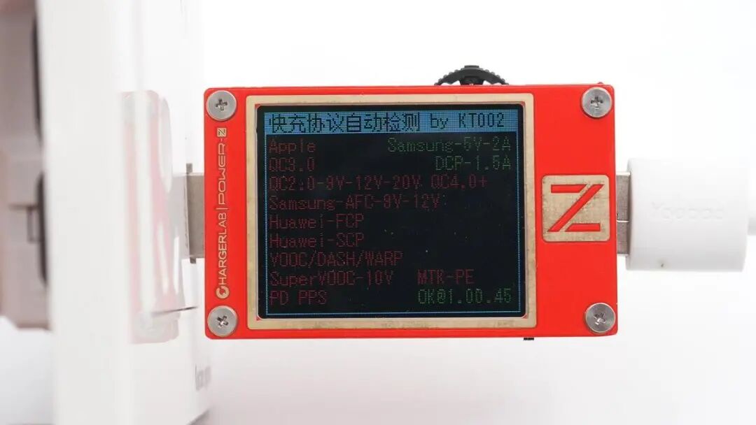 使用ChargerLAB POWER-Z KT002测得USB-A口仅支持Samsung 5V2A和DCP协议。