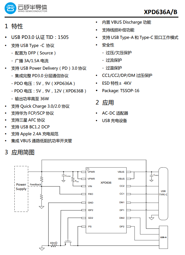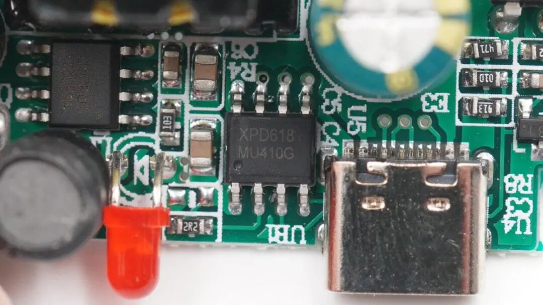 USB-C口协议芯片采用云矽半导体XPD636。该芯片采用TSSOP16封装,支持C+A双USB端口应用,并且单口独立工作时皆支持全协议快充;其Type-C口应用与XPD618一样,无需外围元器件,可轻松通过USB PD 3.0认证(TID号1505)。