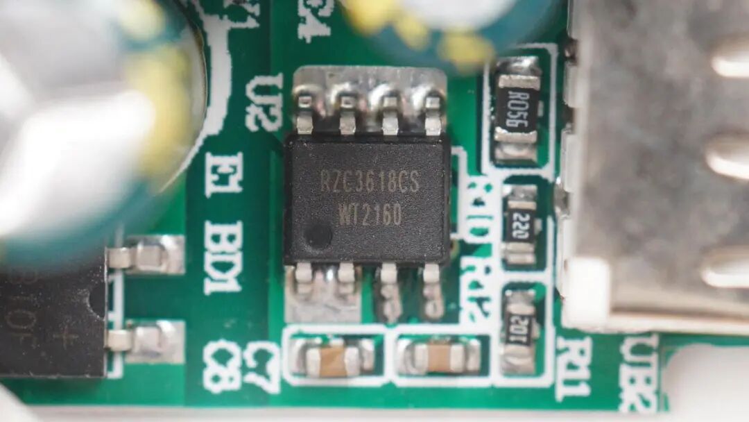 充电器开关电源宽范围输出,同步整流芯片采用瑞之辰RZC3618CS,采用永阜康NS6322进行二次降压为USB-A口输出5V恒压,采用云矽半导体XPD636协议芯片控制USB-C口输出。整个充电器模块也非常小,进而保证了整个插座虽为二合一设计,但仍保持和传统插座一样的造型大小,不会影响房子装修体验。