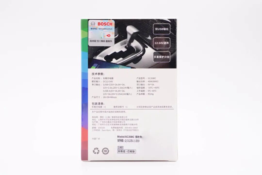 一、博世45W车充外观