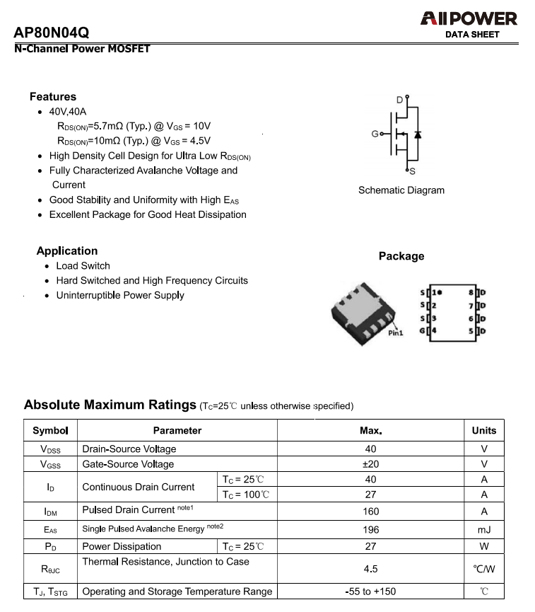 铨力AP80N04Q资料信息。