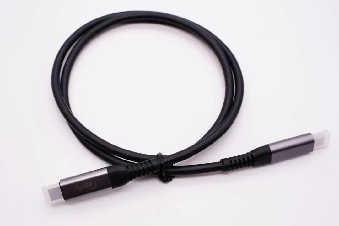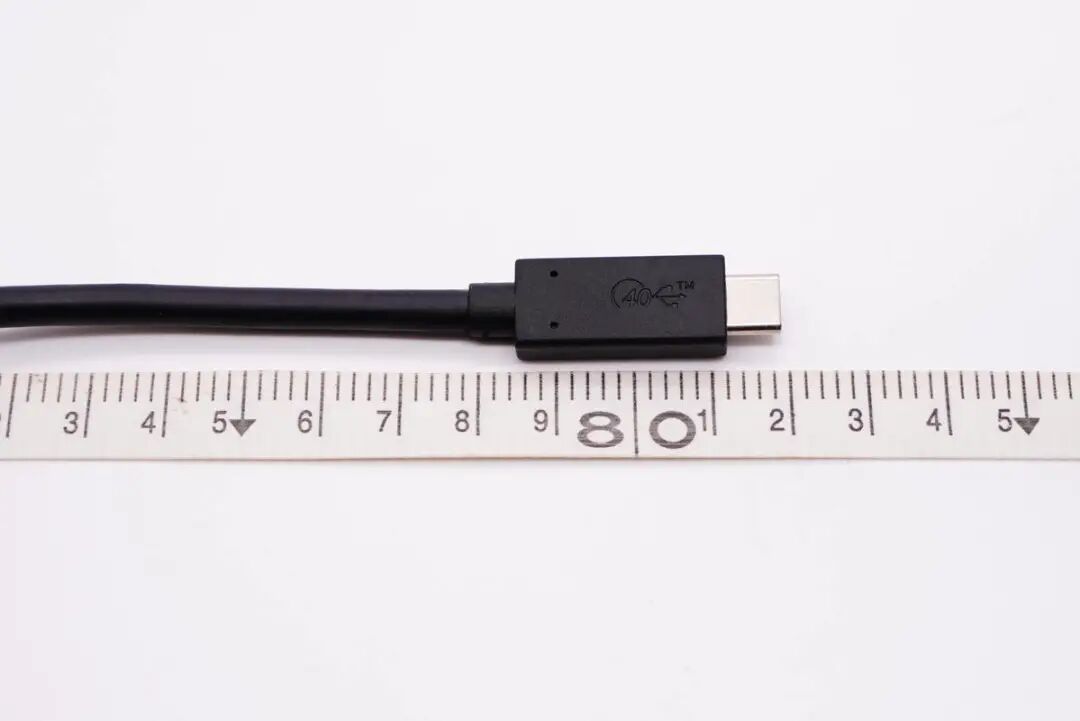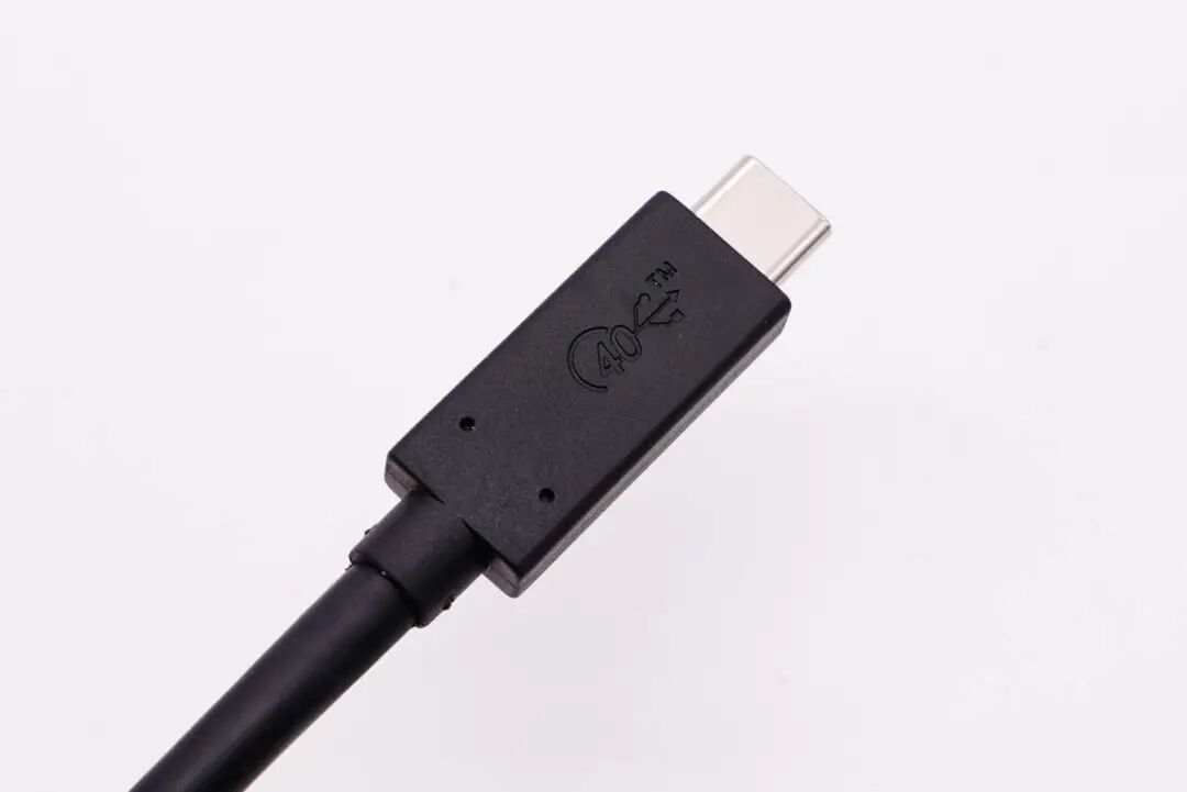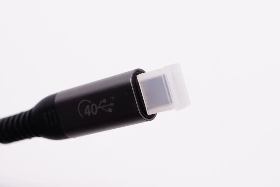 铝合金线头USB4数据线线身为黑色,非常粗壮结实,而且柔软有韧性,表面触摸具有类肤手感。