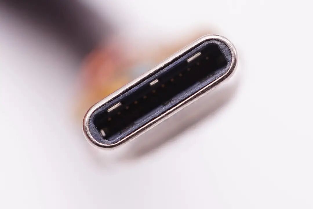 USB-C公头特写,满PIN设计。