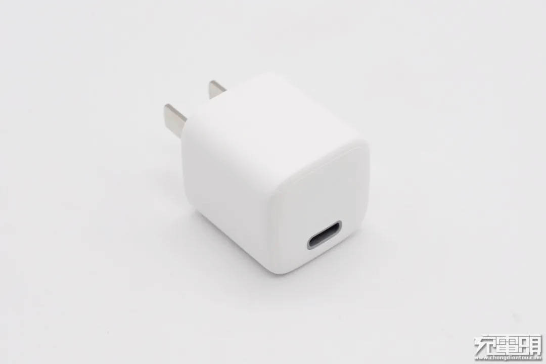 设计上产品并没有走迷你充路线,即便如此体积仍要比苹果20W充电器要小。充电头网通过拆解了解到,充电器输入端采用接触式通电,输出端USB-C母座外套钢套加固,初次级间设有麦拉片,保证初次级的安规距离。