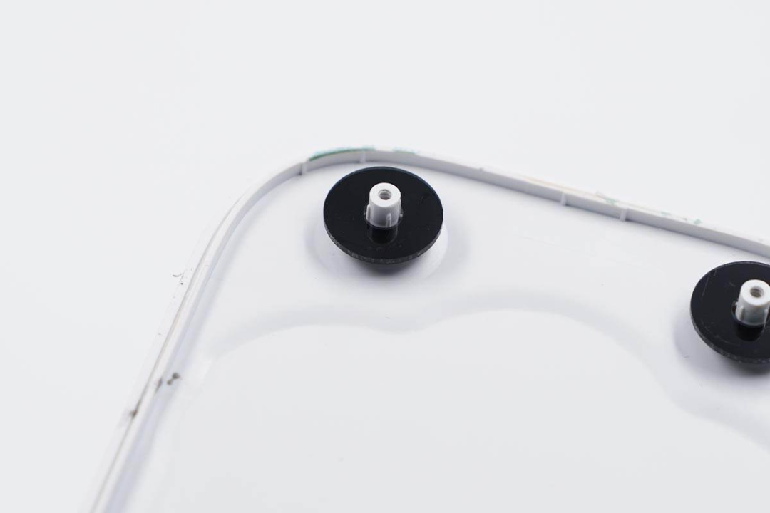 顶部外壳的固定柱上有黑色的环形塑料板。