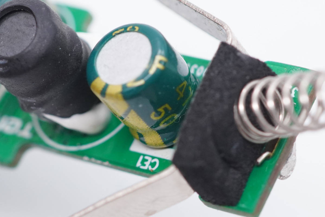 输入端一览,正极弹簧和负极弹片间有泡棉隔离绝缘。