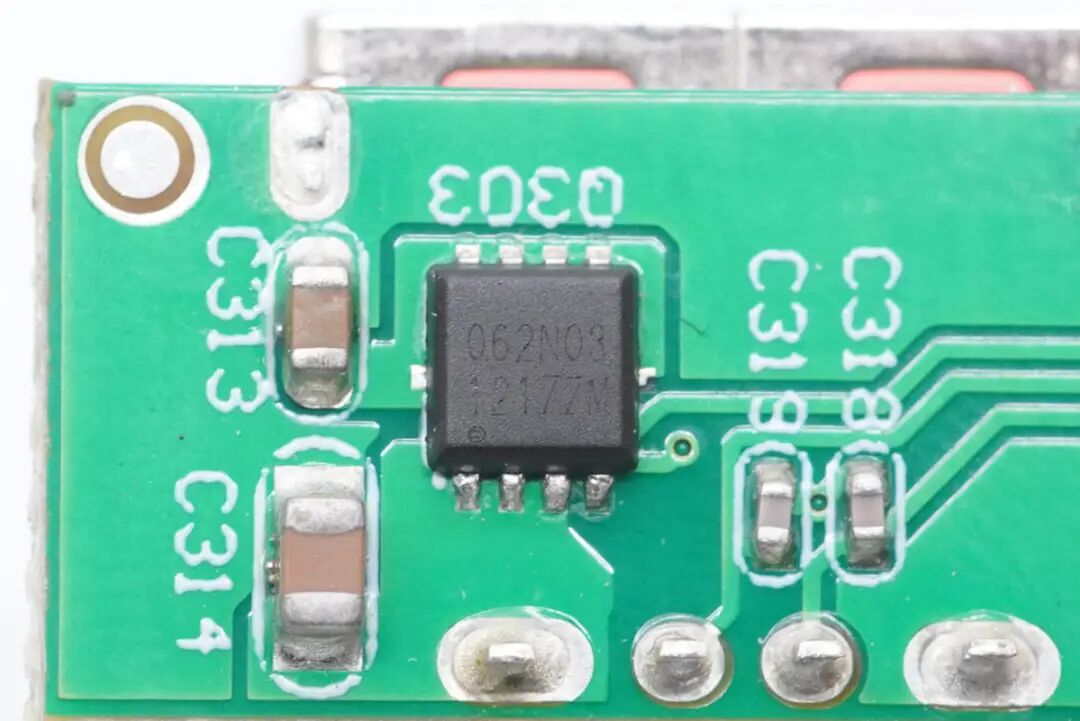 VBUS开关管采用真茂佳ZM062N03M,耐压30V,NMOS,导阻6.5mΩ。