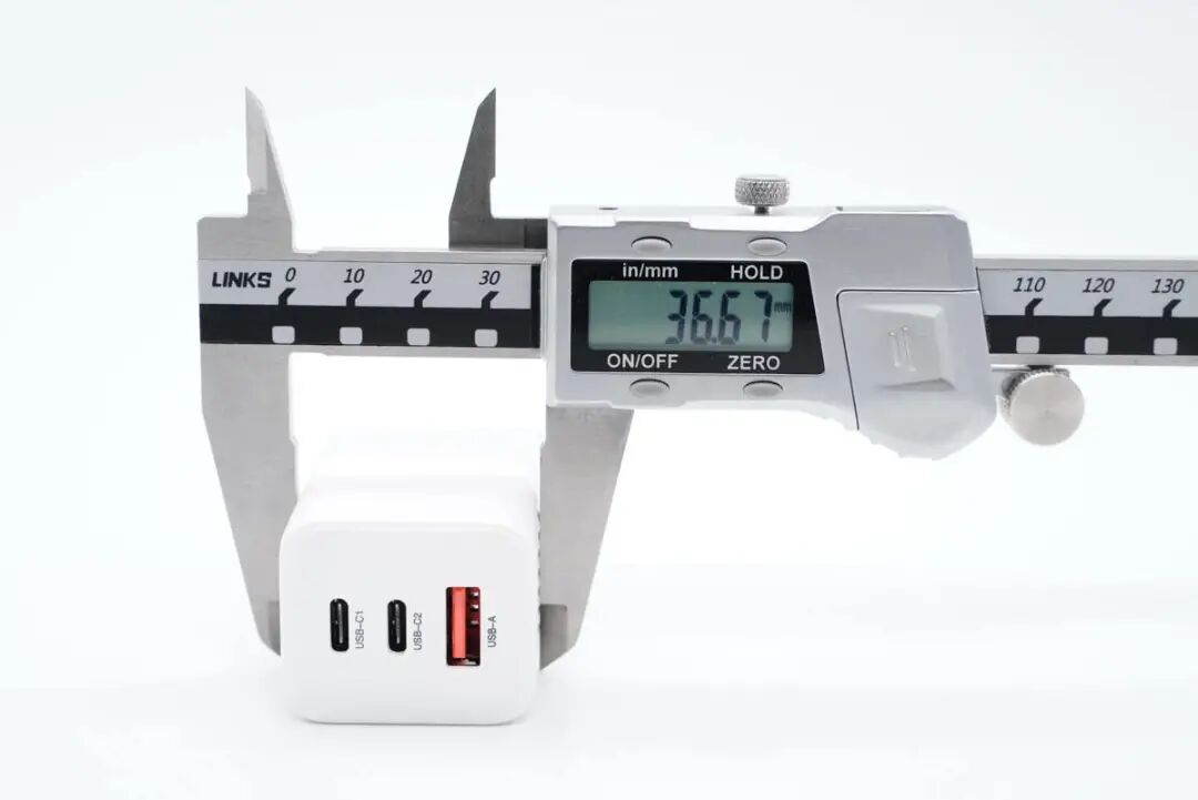 厚度为36.67mm。通过三维可以算得充电器体积约为75.29cm³,功率密度约为0.86W/cm³。