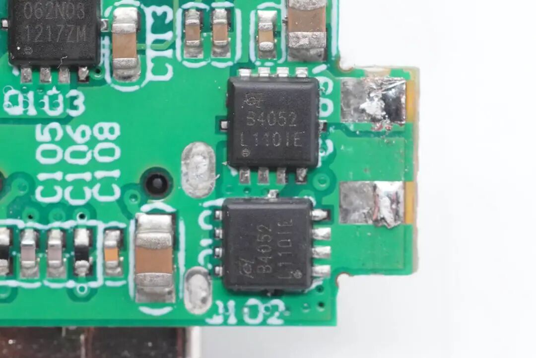 外挂两颗东沅FKBB4052 MOS管,耐压40V,导阻8.5mΩ,为1A1C接口输出同步整流降压。