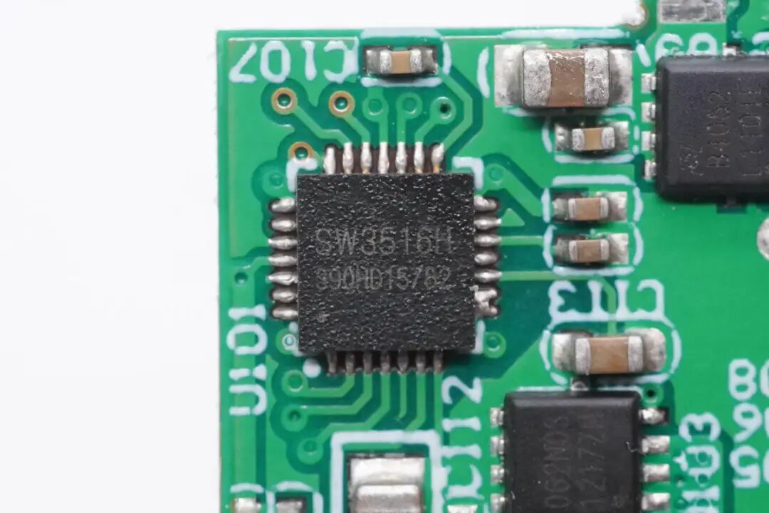 C2口和A口的二次降压电路主控芯片采用智融SW3516H,用于进行降压控制和协议识别。智融SW3516H是一款高集成度的多快充协议双口充电芯片,支持A+C口任意口快充输出,支持双口独立限流。