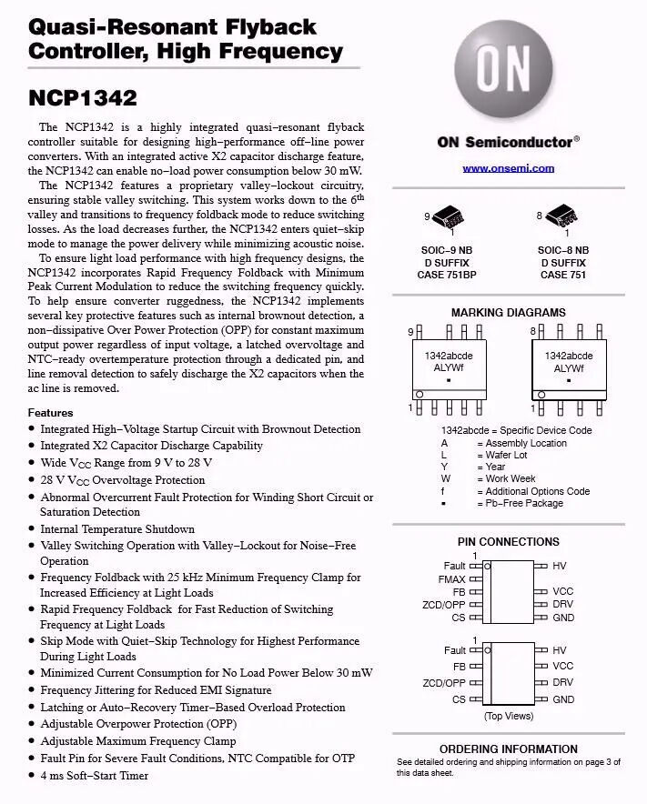 开关电源主控芯片采用ON安森美NCP1342,这是一颗高频准谐振反激初级PWM控制器,内置主动X2电容放电和多重完善的保护功能,具有超低的待机功耗。