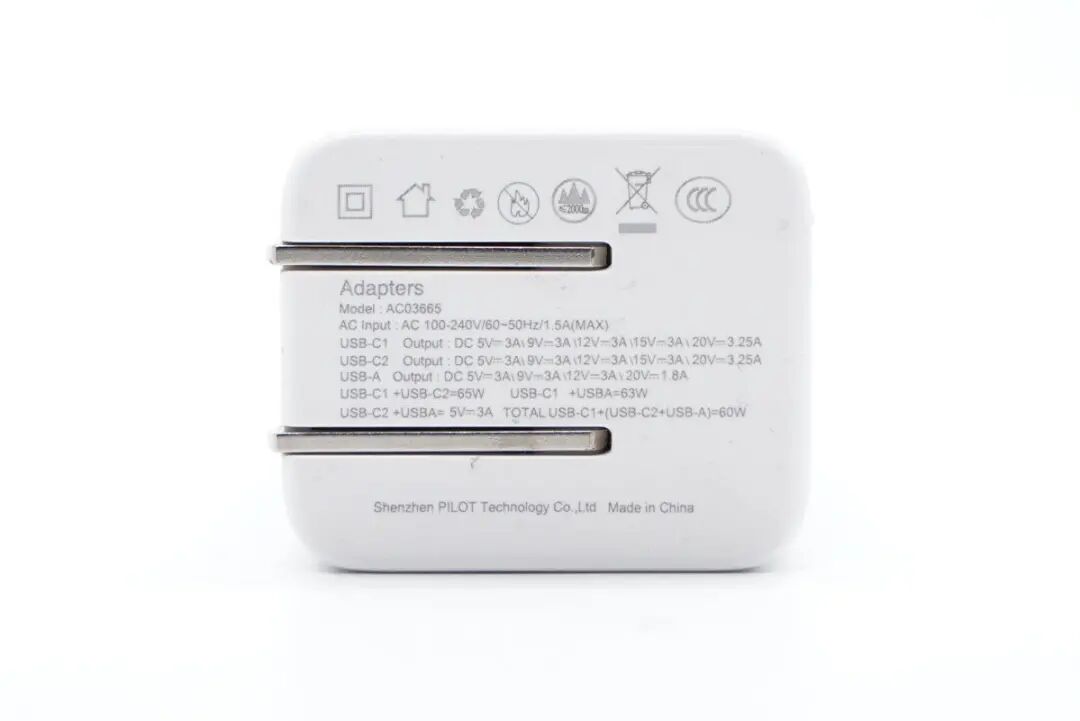 PiLOT今翔是一家15年OEM/ODM研发及生产服务的工厂。这款65W氮化镓快充体积做得很小,搭配可折叠美规插脚,小巧便携。其次产品整体的兼容性也很好,配备2C1A三个接口,支持QC、AFC、FCP、SCP、PE2.0、PD3.0、PPS多个快充协议,满足市面上绝大多数品牌设备快充。支持两台设备同时快充,最多满足三台设备同时充电需求。