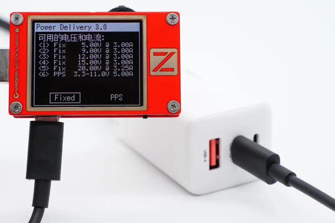同时测得C1口具备5V3A、9V3A、12V3A、15V3A、20V3.25A五组固定电压档位,以及3.3-11V5A一组PPS电压档位。