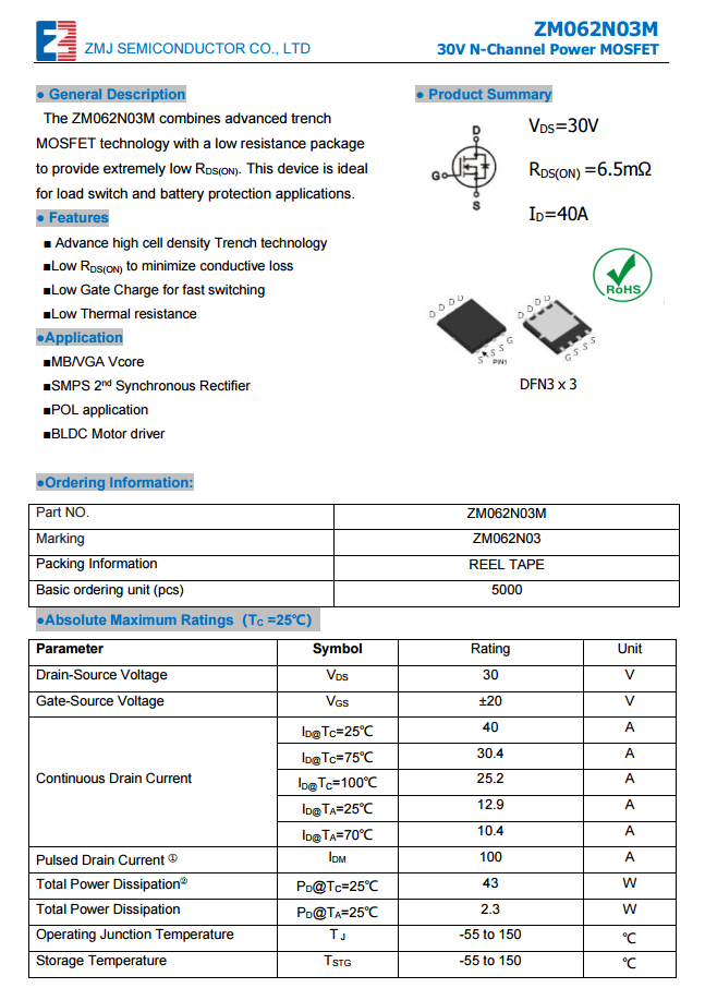 真茂佳ZMS070N10资料信息。