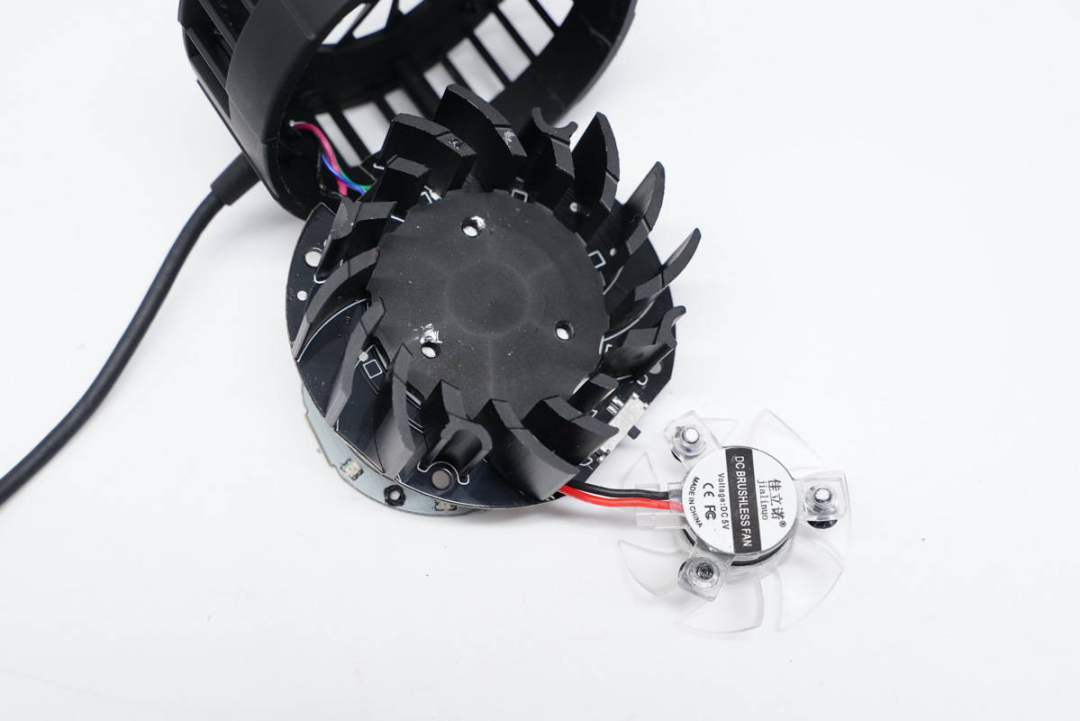 风扇来自佳立诺,支持DC 5V输入,通过了CE、FCC认证。