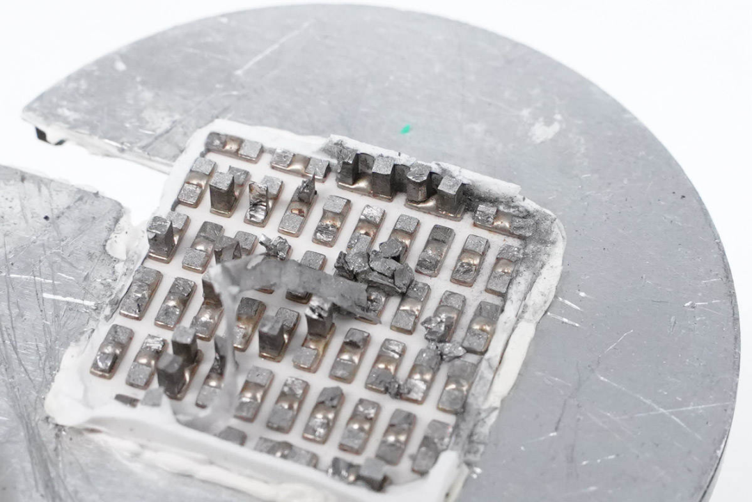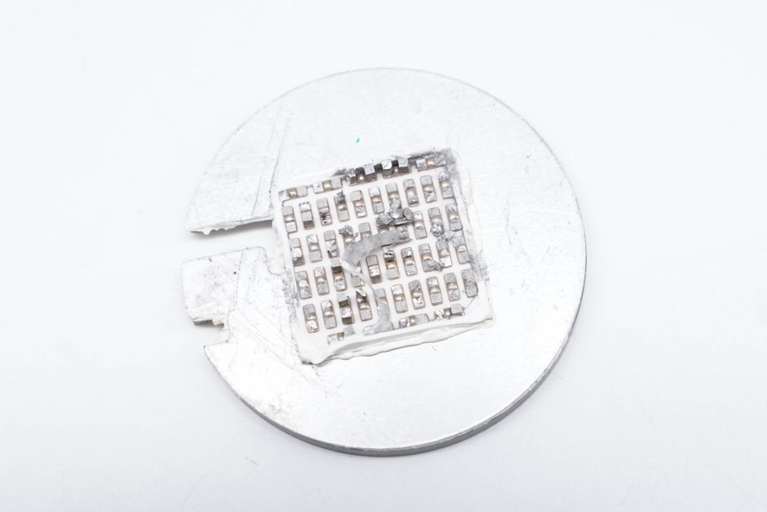 晶片和线圈背面的散热板打胶固定,粘贴得很牢固,分离时将晶片分开了。