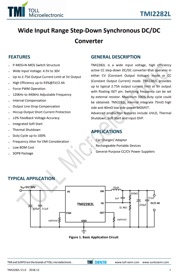 拓尔微 TMI2282L 同步整流降压IC,用于为制冷片供电。内部采用PMOS+NMOS的结构,支持直通模式。