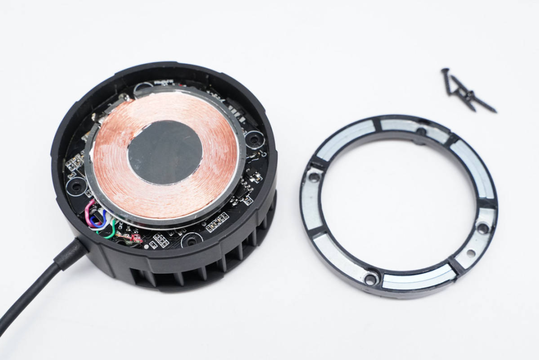 拆掉螺丝即可将边缘环形塑料壳取下,PCB板也是顺带使用螺丝固定。