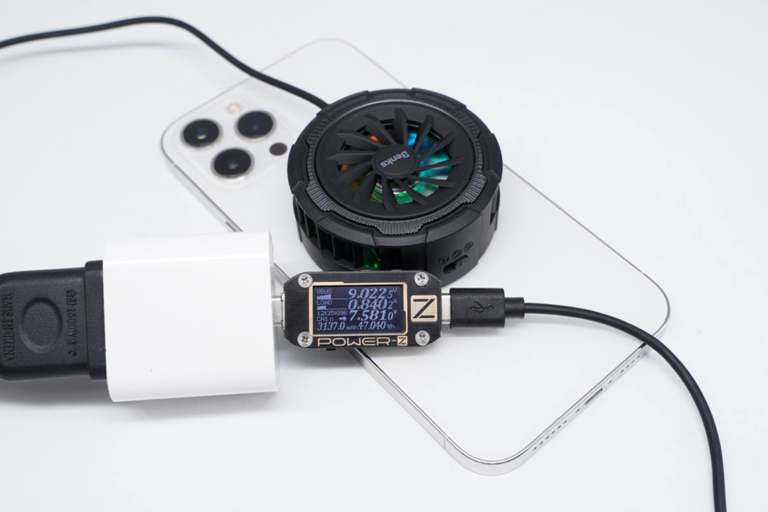 邦克仕这款制冷磁吸无线充设计得可以说非常有创意,将散热背夹与无线充电器结合起来,磁吸贴附在手机上进行充电和降温,边充边玩使用体验好,同时产品内置RGB灯,使用起来也会更加炫酷。作为第三方磁吸无线充产品,给iPhone 12充电输入功率约9W出头,符合标准。同时产品也通过了qi认证,可以满足市面上大多数品牌手机无线充电需求,最大功率15W。