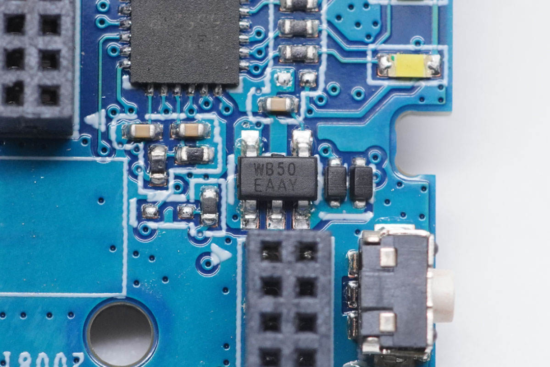 USB-A接口旁边设有一颗丝印GF6R的协议芯片,用于A口快充支持。
