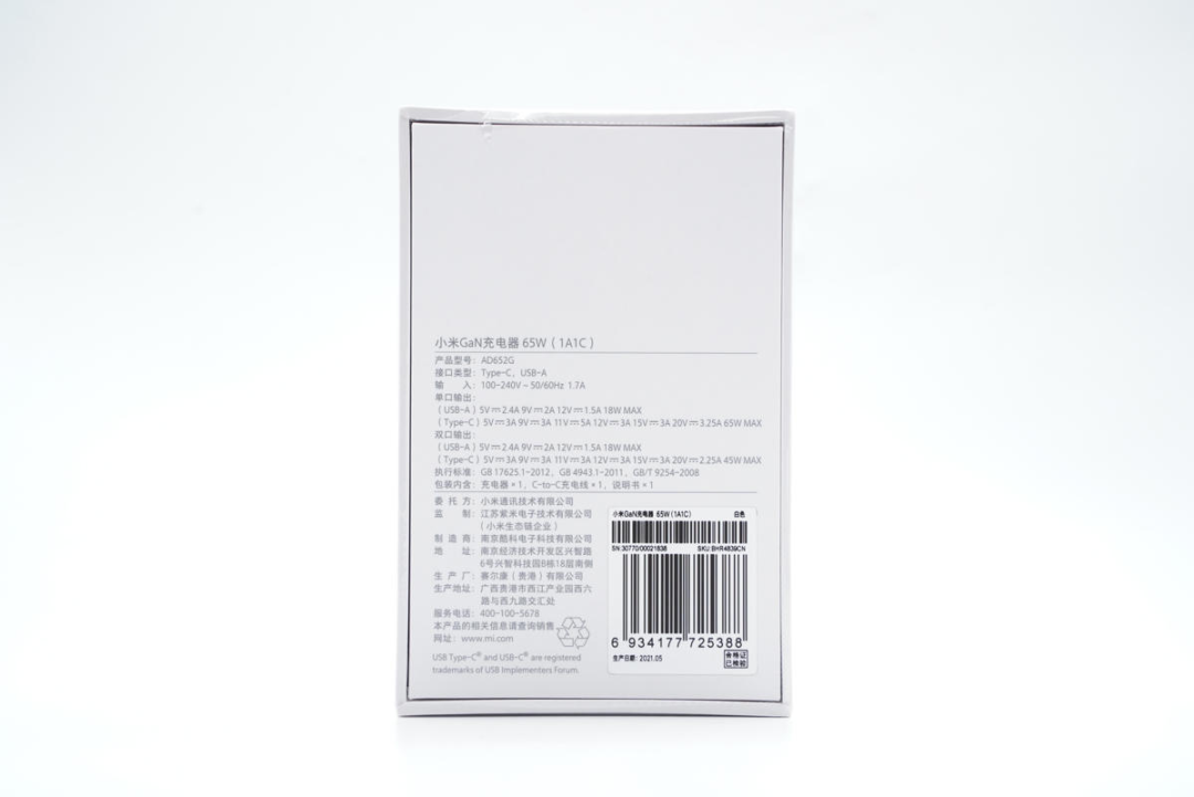 拆解报告:小米65W 1A1C氮化镓快充充电器