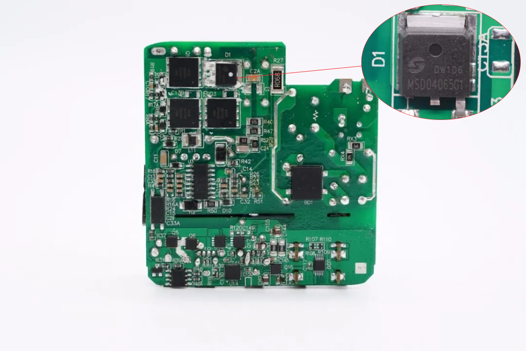 MSM06065G1碳化硅二极管采用DFN5*6封装,超薄封装节省体积,适用于超高功率密度的大功率氮化镓适配器中。