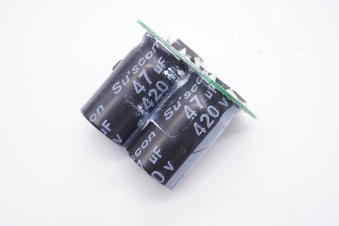 两颗高压滤波电解电容来自中国台湾SUSCON冠坤,规格都是420V 47μF。