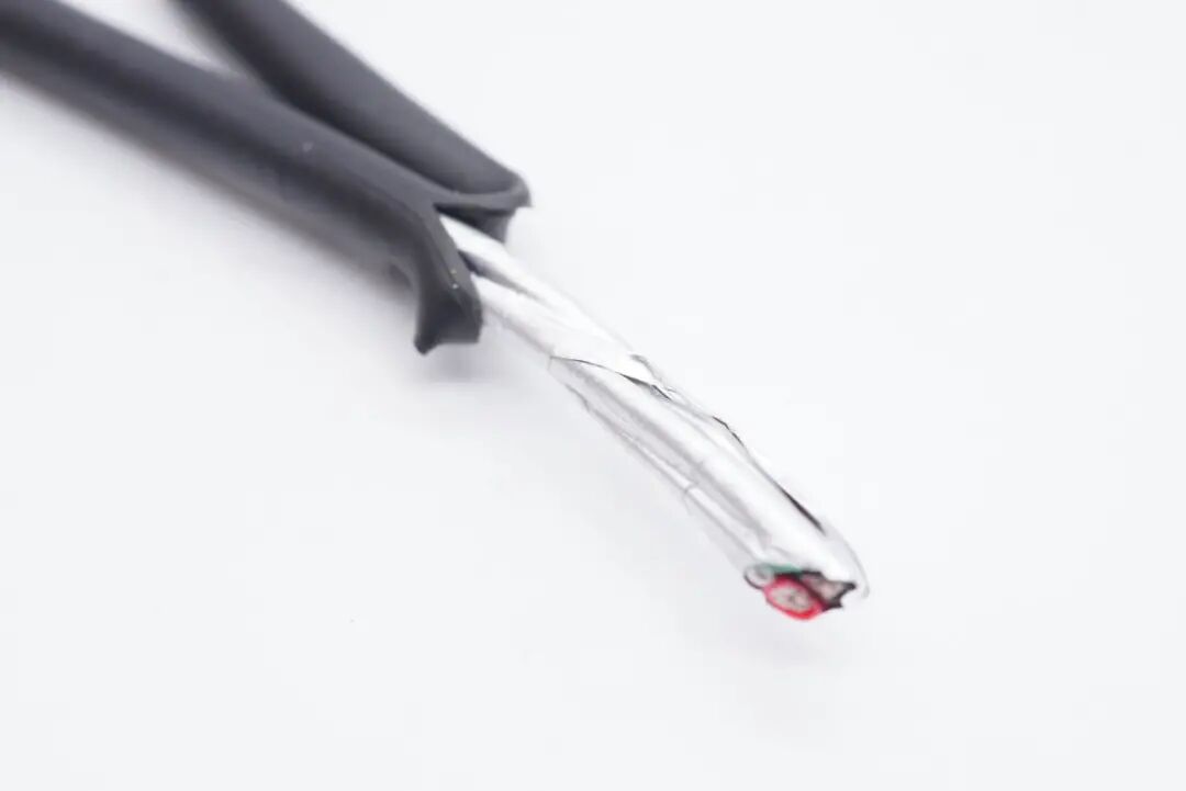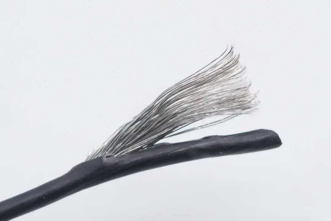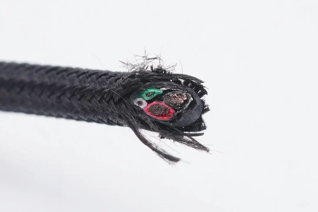 黑色线芯特写,内部掺有抗拉线,另外三根线芯也是相同设计,提升线缆整体抗拉性能。
