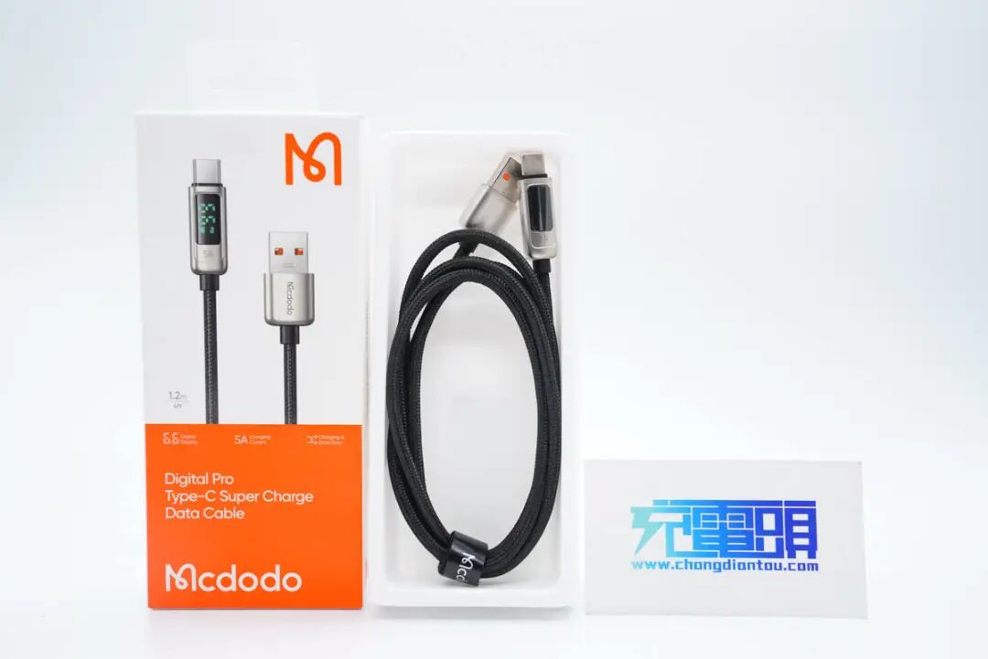 Mcdodo麦多多推出的这款数显快充线为编织线,端子头部分采用高纯度锌合金一体成型制作,黑色线身耐脏耐用,同时手感还不错。线缆除了能实时观察充电功率外,本身最大可过5A大电流,市面上的大多数品牌快充都能承受并检测出来功率,实测可以触发华为40W、66W超级快充,小米TURBO CHAGER快充以及VOOC系快充等。当然,要搭配各自私有的快充头才可以触发快充。
