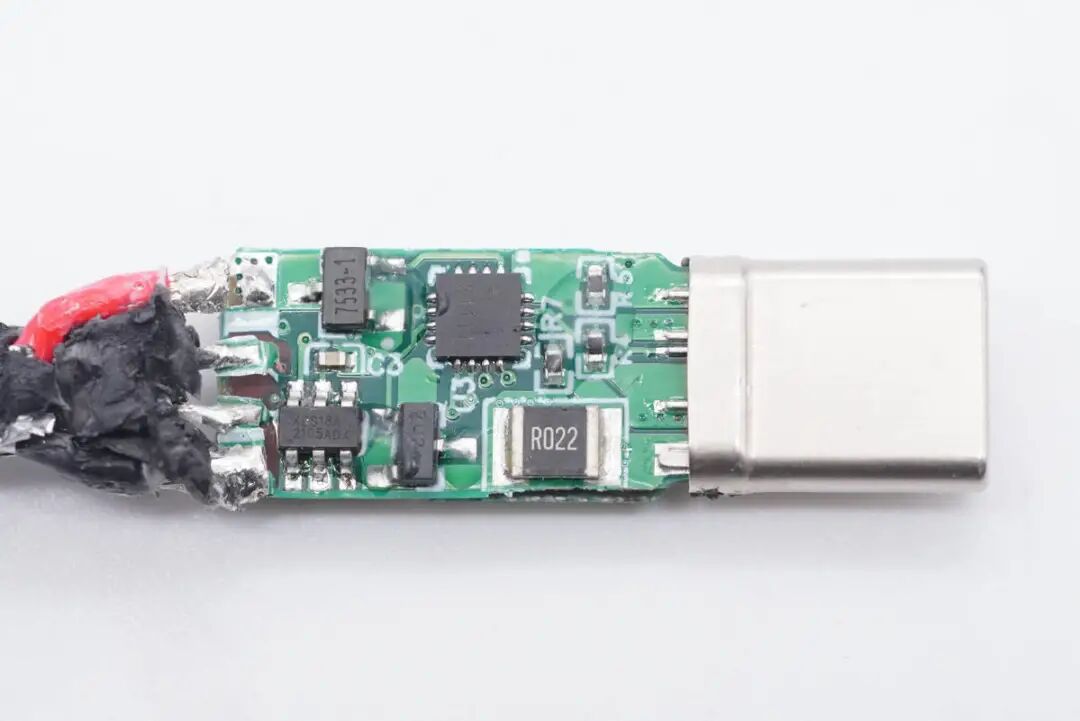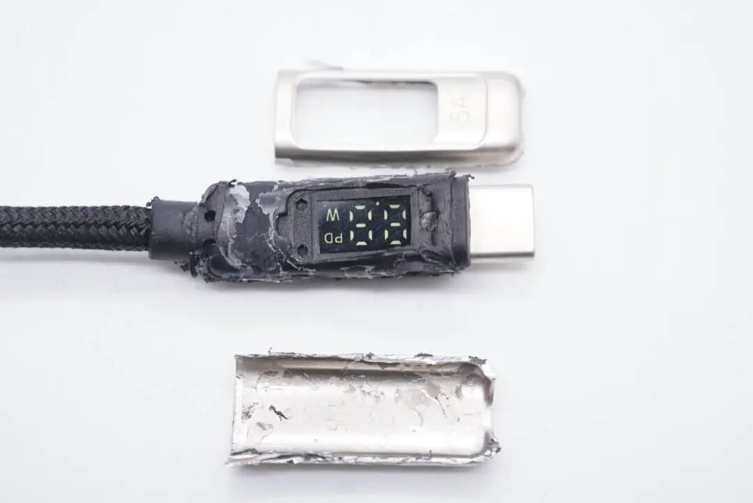 USB-C线头外壳也拆开,内部也是填充硬封胶。