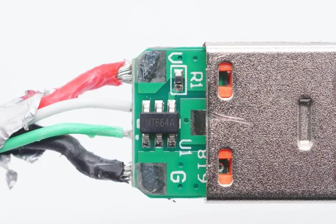 USB-A公头正负极加宽来通过大电流,中心有特殊触点。