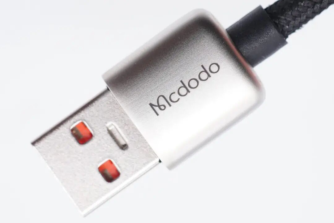 线头金属壳采用高纯度锌合金材质,一体成型制作工艺,耐腐蚀、耐磨损,线头边角圆润使用不硌手。A头外壳上有Mcdodo品牌。