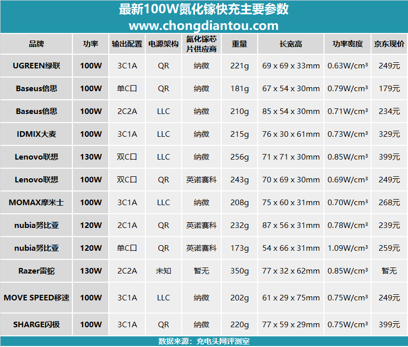 除了手机品牌巨头,市场上还有多家第三方配件品牌带来了100W快充,他们也是这场大功率快充盛宴的主角。