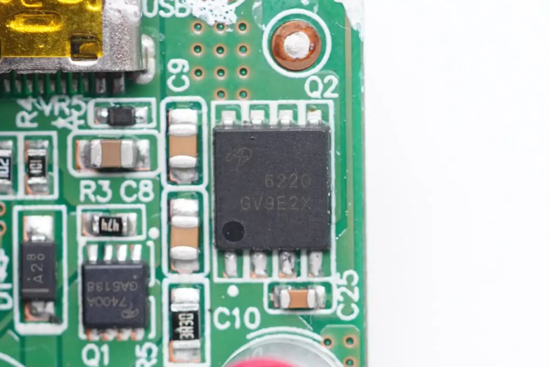 连接小板上设有开关电源主控芯片,PI INN3368C,这是一颗集成了高压开关、同步整流和FluxLink反馈功能的数控恒压/恒流离线反激式准谐振开关IC,内置650V耐压开关管,集成外部MCU供电,最大支持65W输出。
