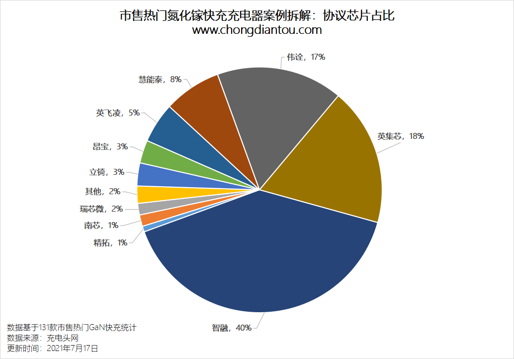 英集芯和伟诠的占比分别为18%和17%,位居第二和第三。此外,本土品牌中慧能泰、瑞芯微、南芯、昂宝等品牌也有不同的占比。